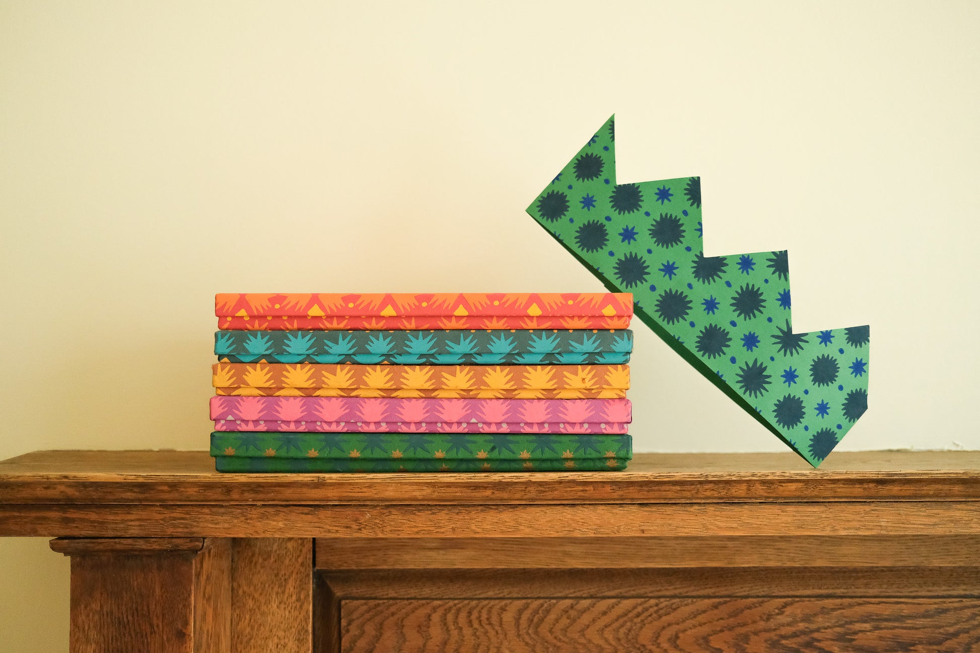 - Set of 6 brightly patterned crowns.