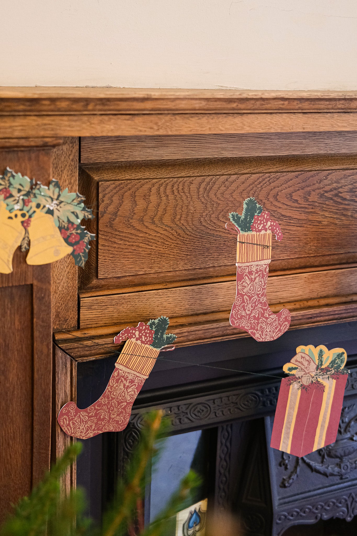 This is a true traditional Christmas garland, with all the favourite festive images and scenes; Christmas trees, stockings, presents and bells.