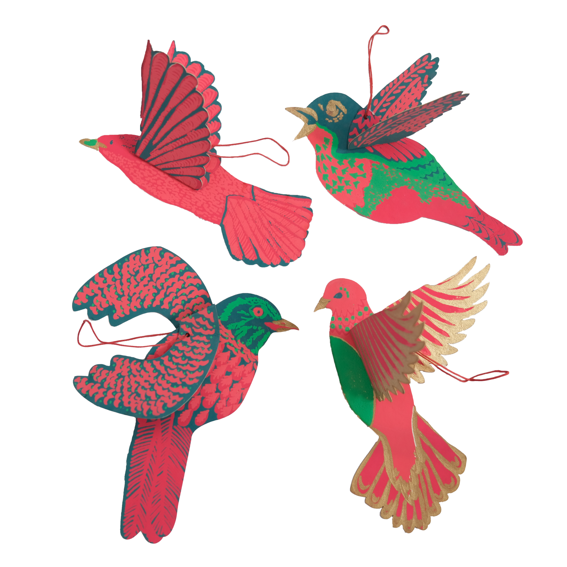 With four dazing, jewel coloured birds, this set of paper decorations is inspired by colourful festive ornaments of years past.