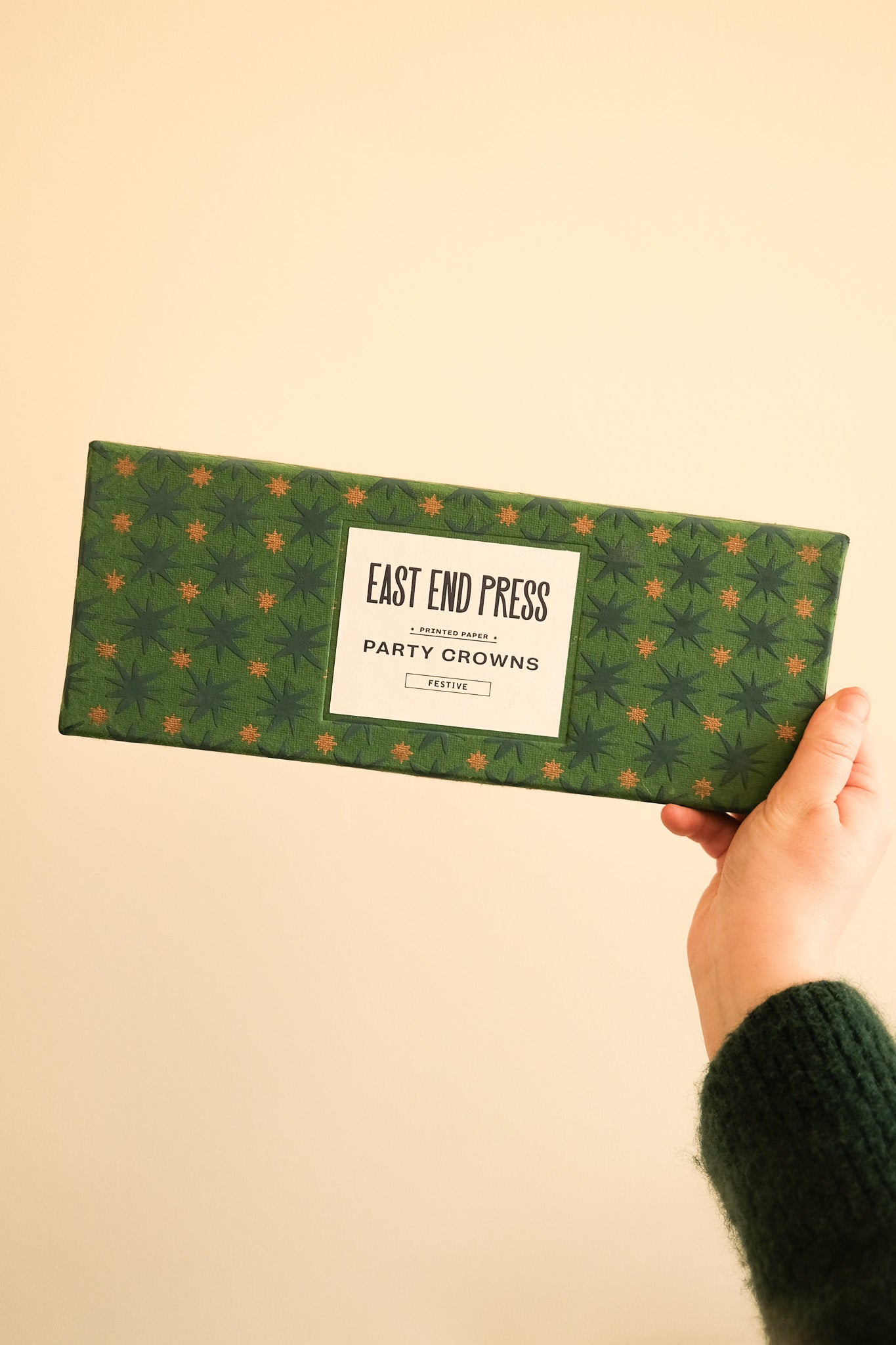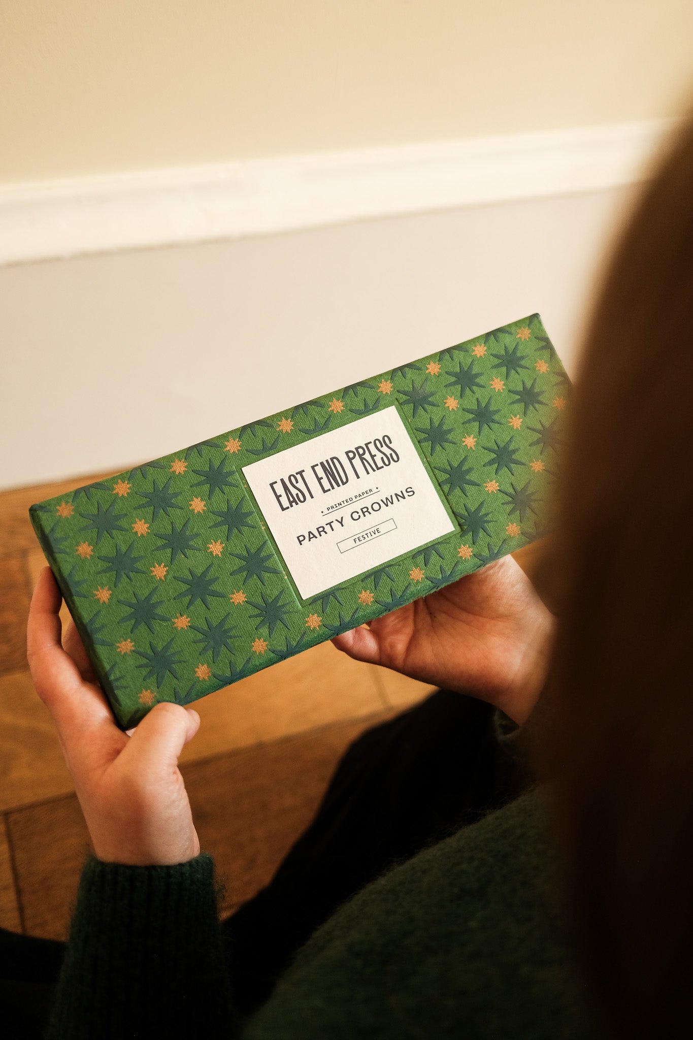 Our colourful party crowns are each screen printed by hand with a unique pattern onto recycled paper. Each crown is slightly different, but all have a touch of festive fun! They are sturdy enough to be packed away and reused, celebration after celebration! The crowns are large enough for adult heads, and perfect for adding some joy to your party!