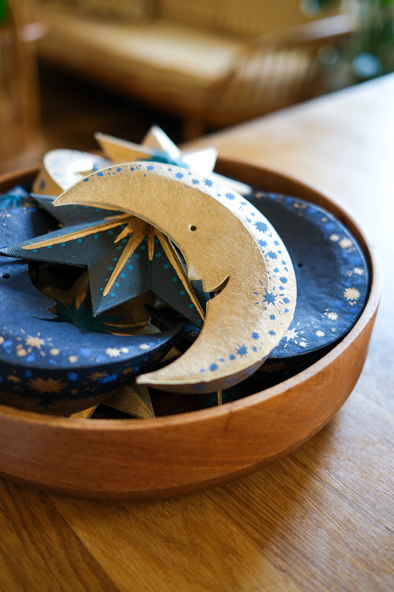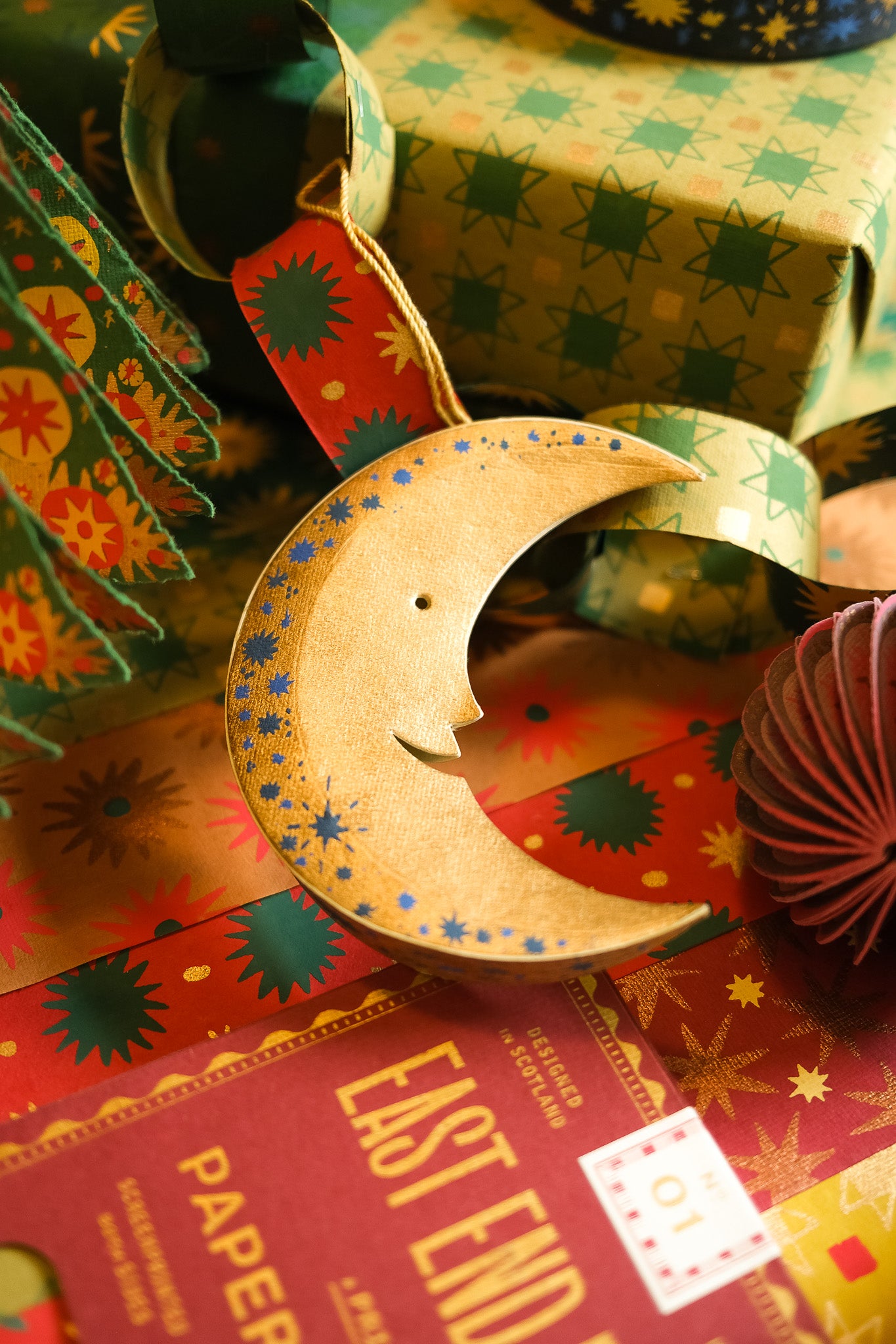- Screen printed board ornament, sustainably made from 100% recycled paper.