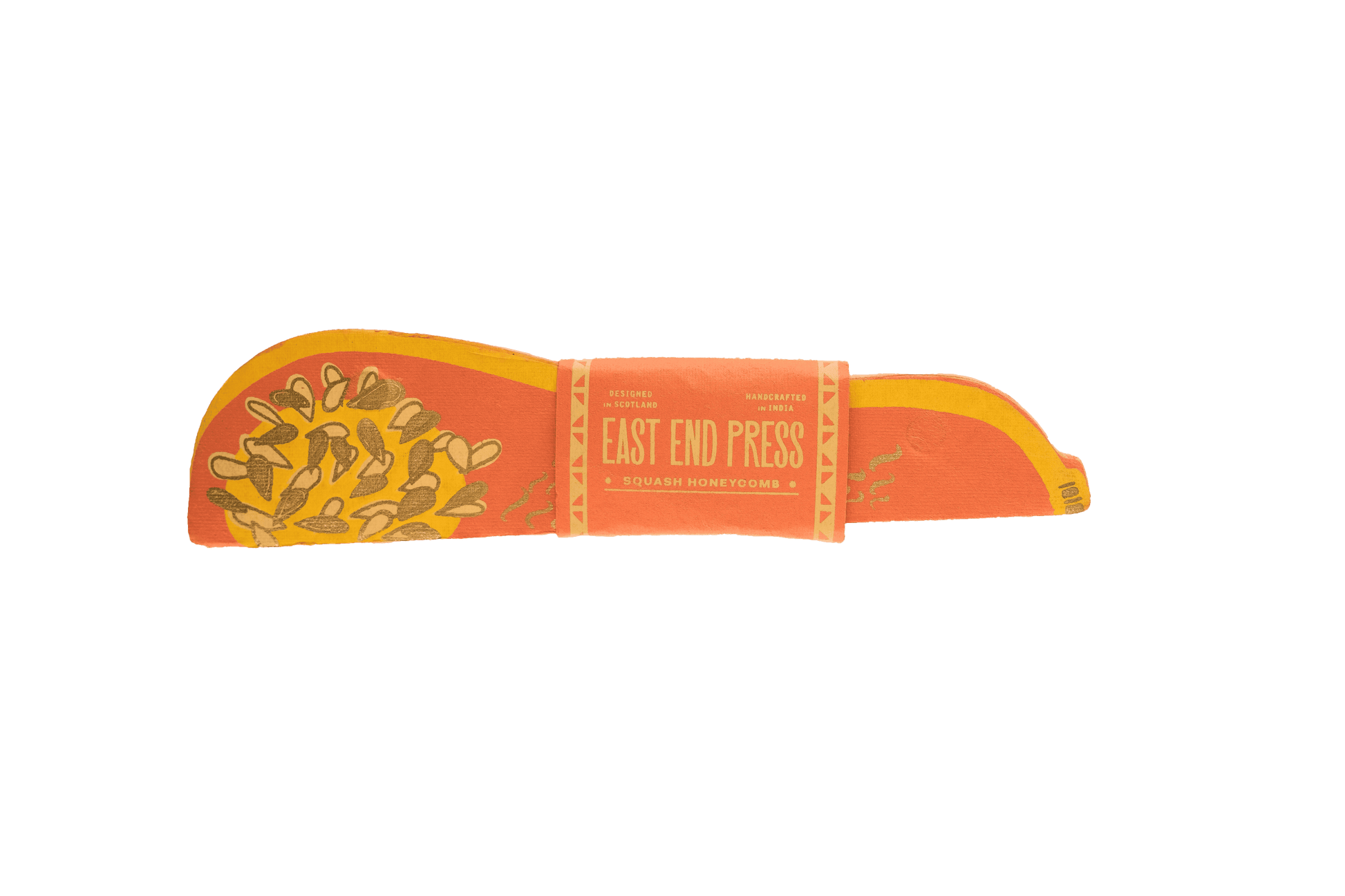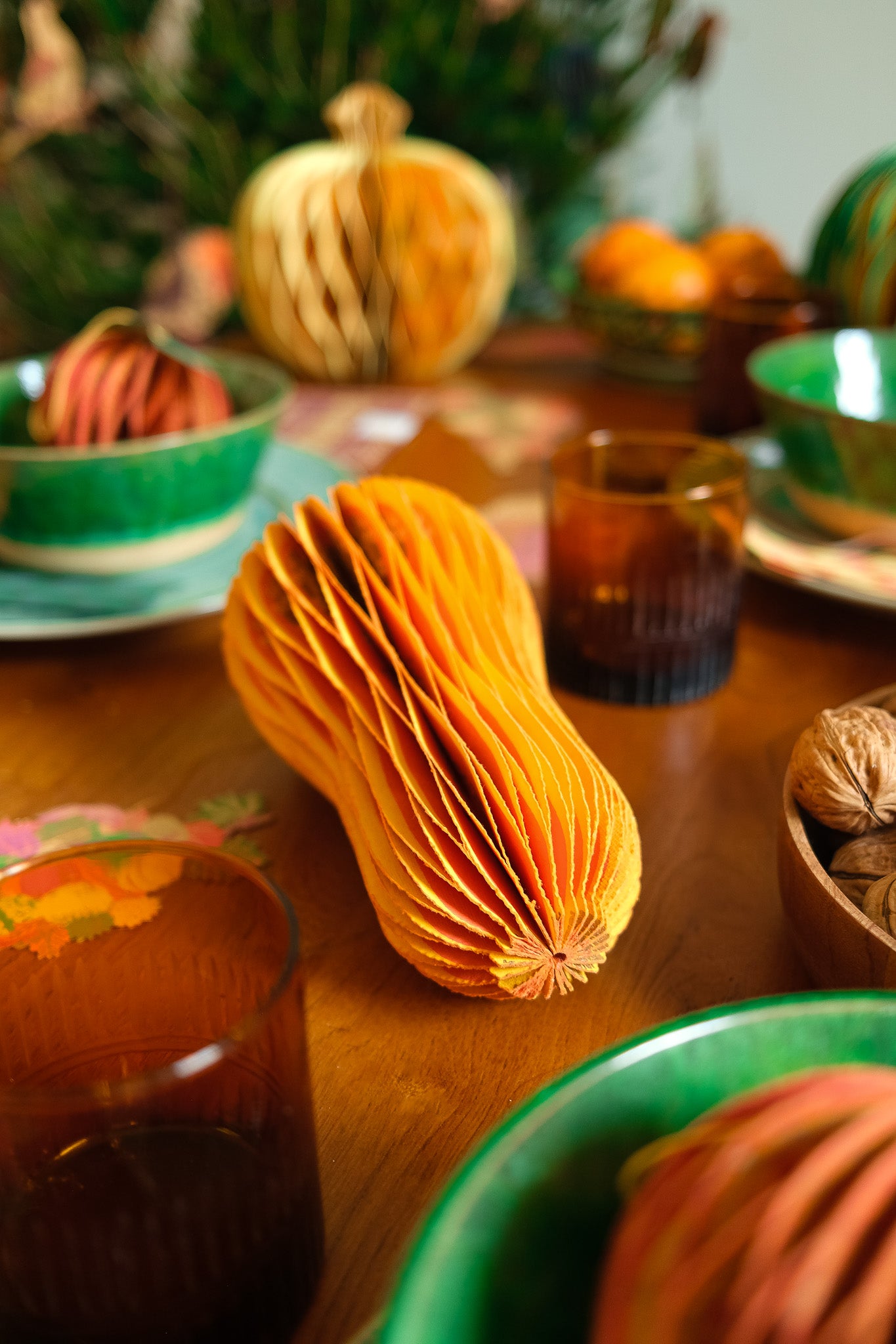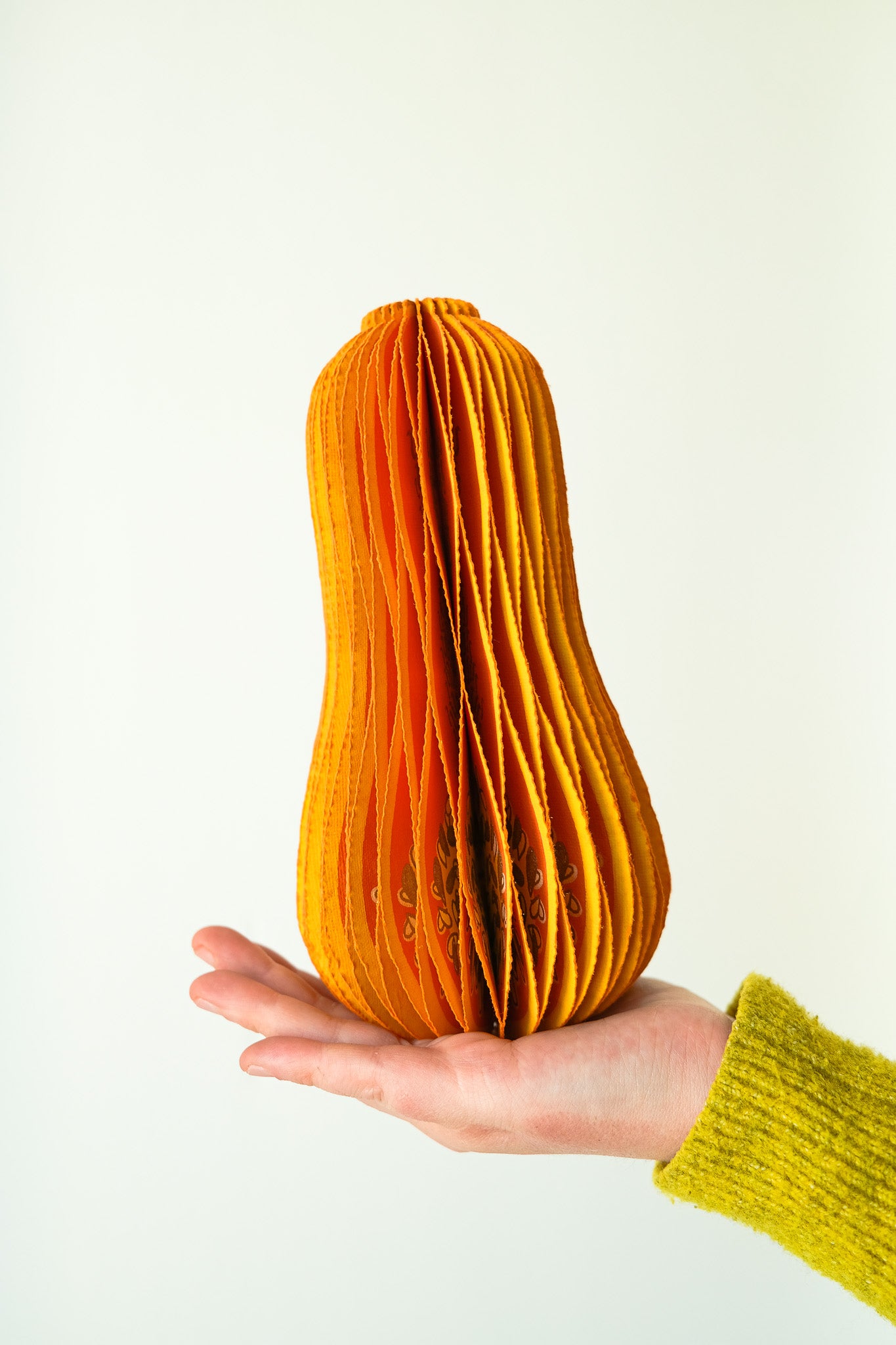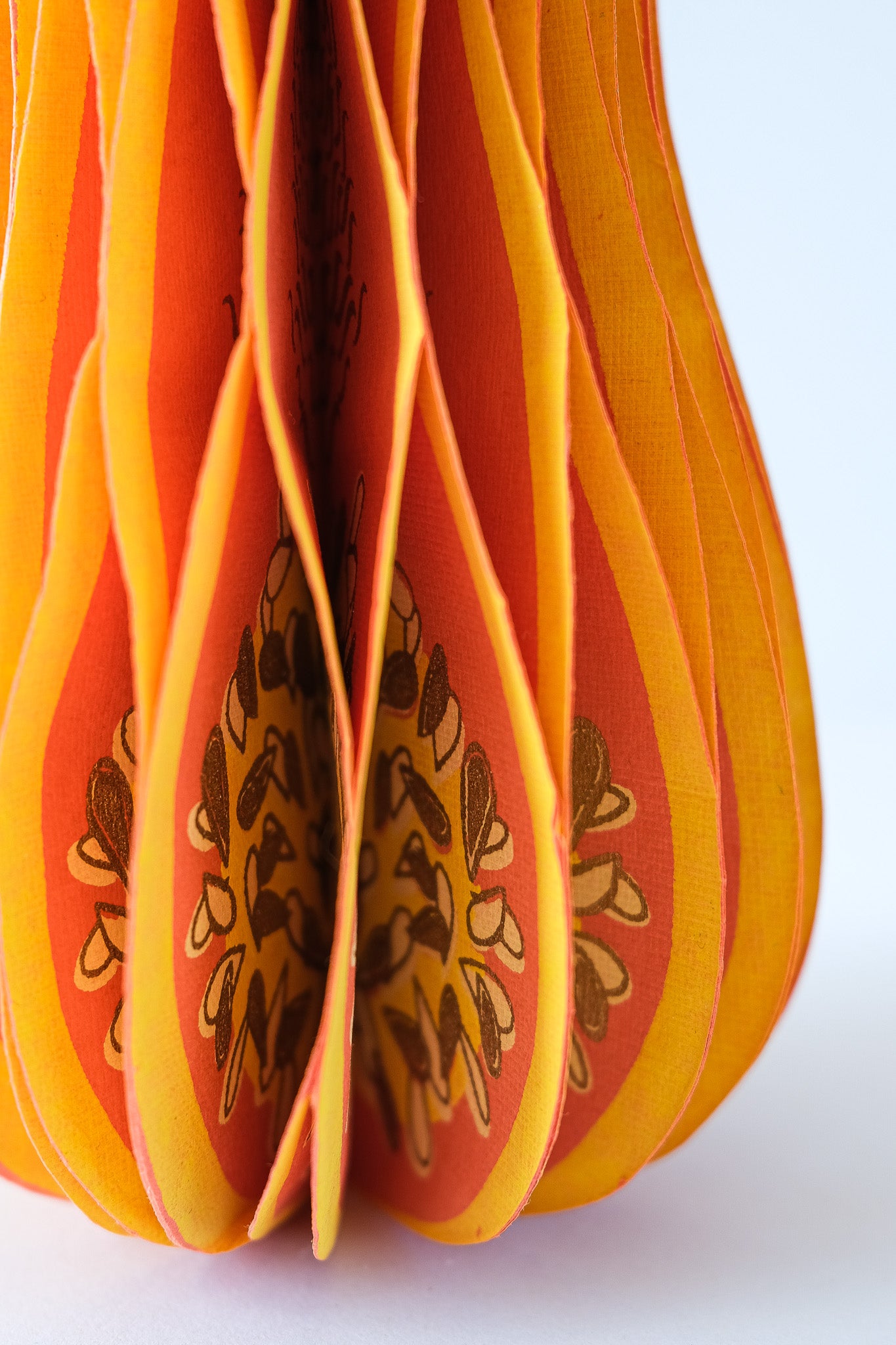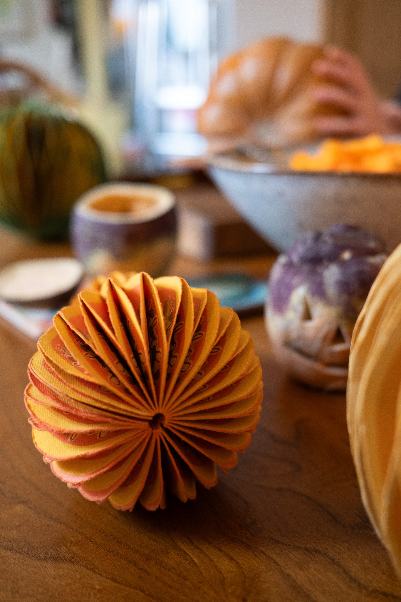 Composed of intricate layers of recycled cotton paper, each decoration unfolds to reveal a three-dimensional squash honeycomb.