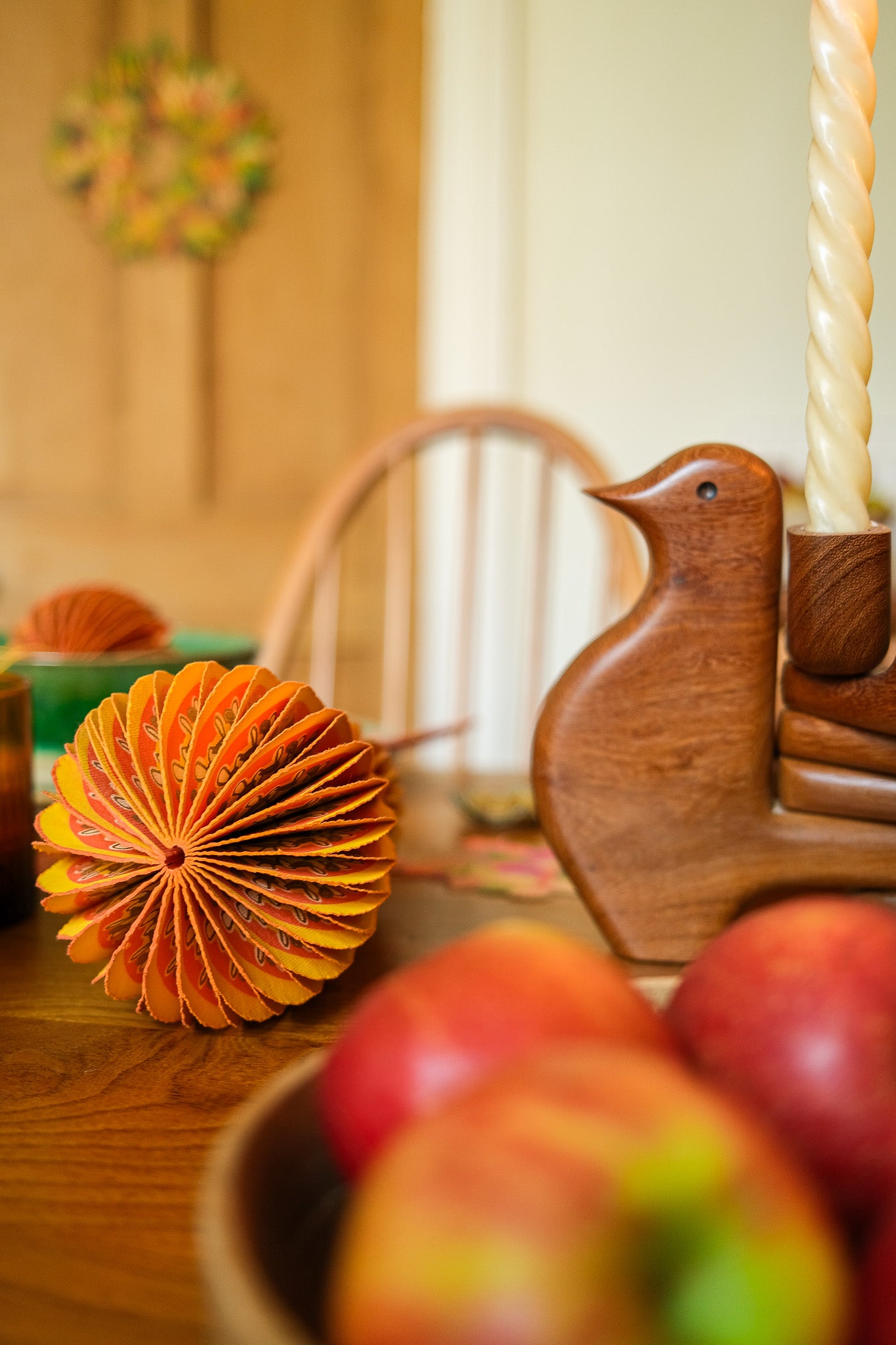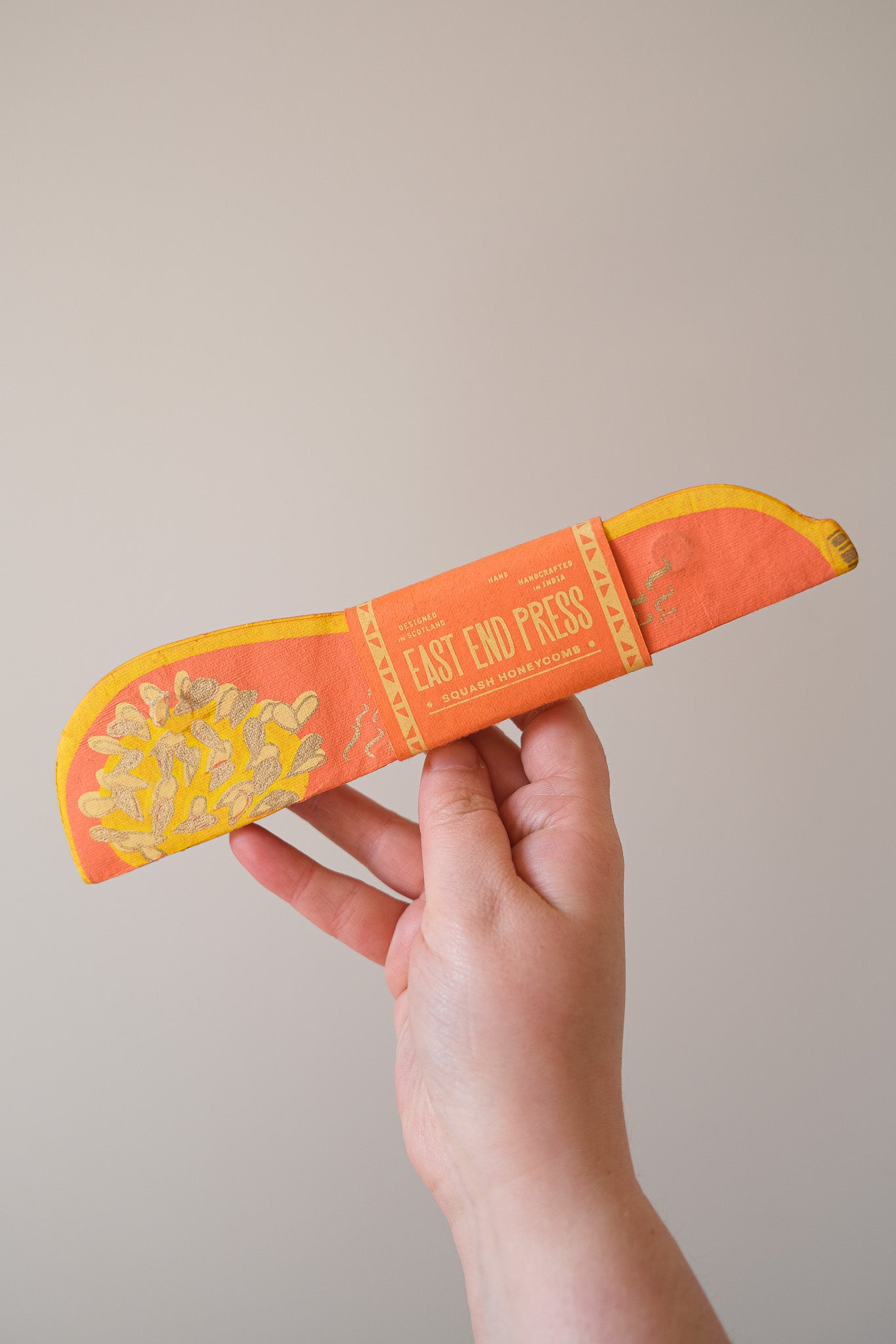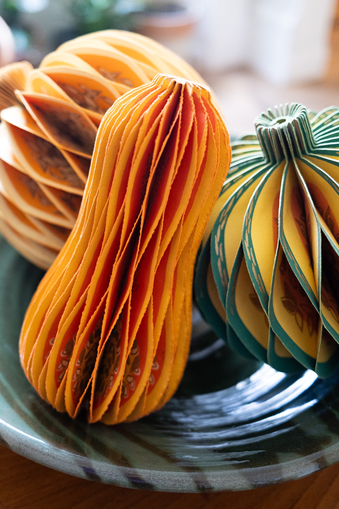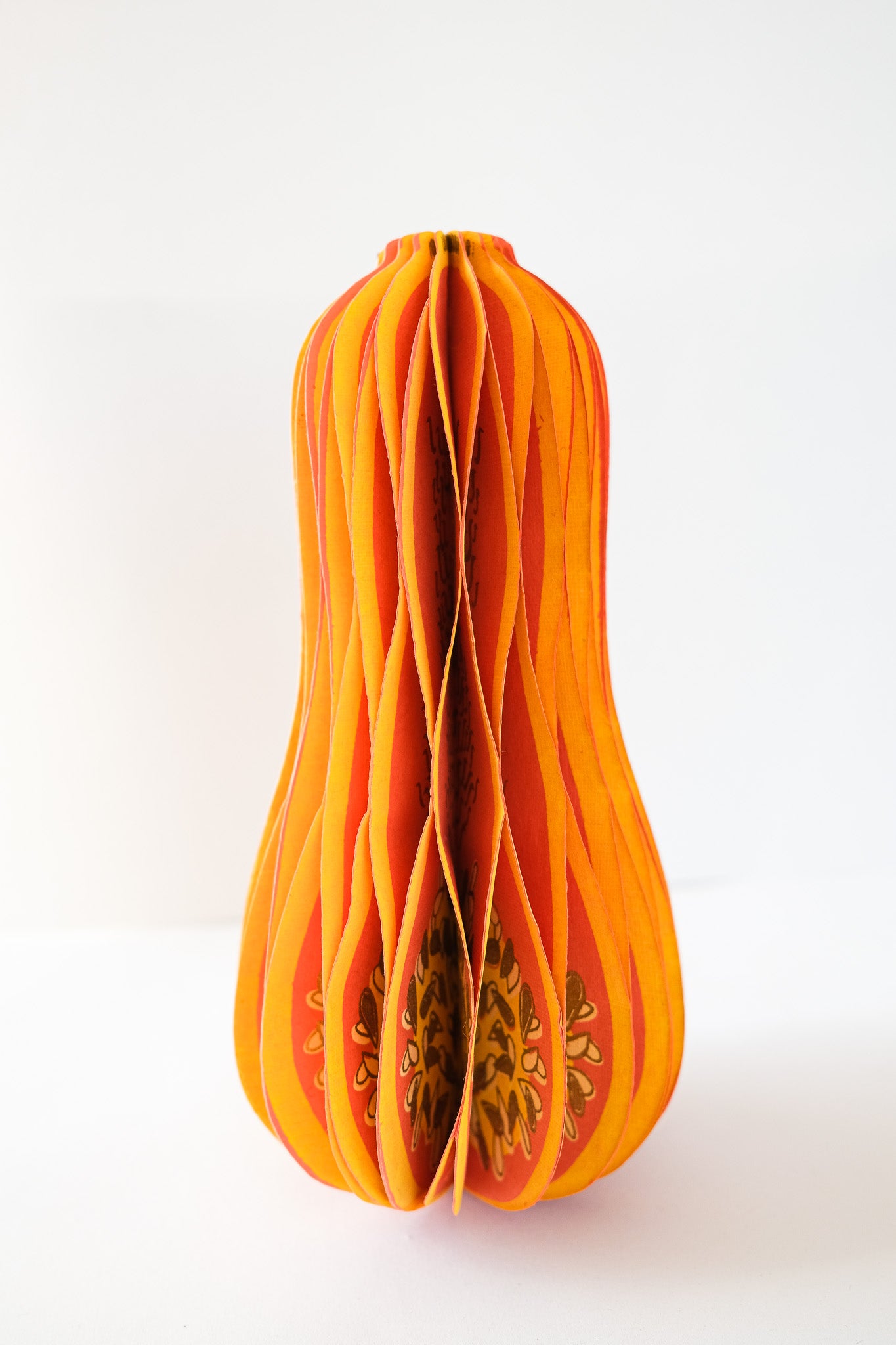 Composed of intricate layers of recycled cotton paper, each decoration unfolds to reveal a three-dimensional squash honeycomb.