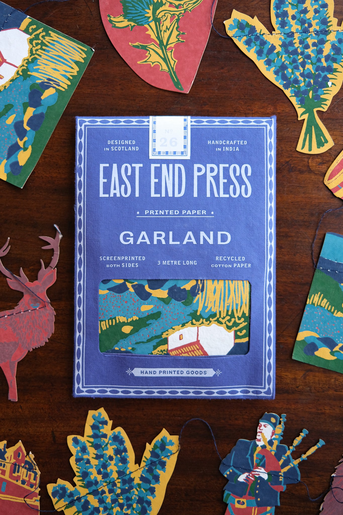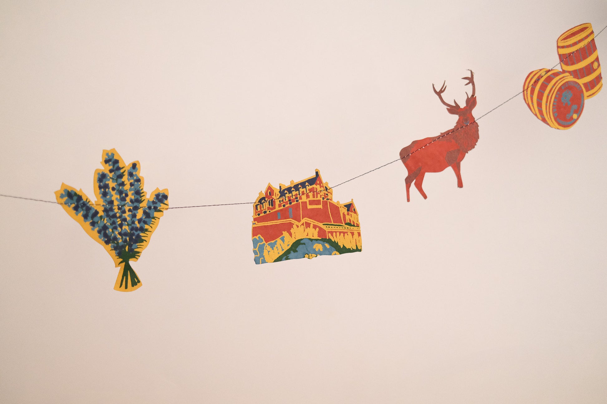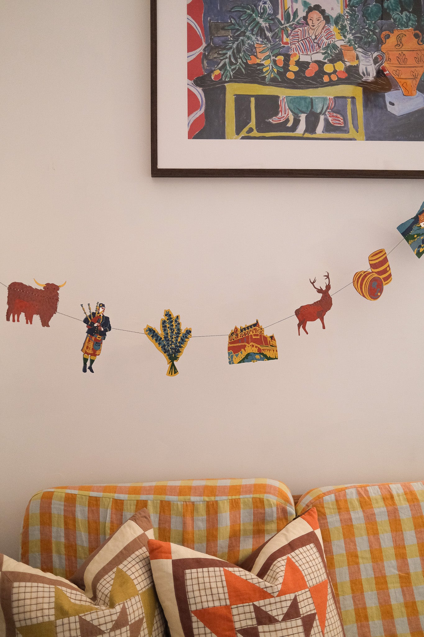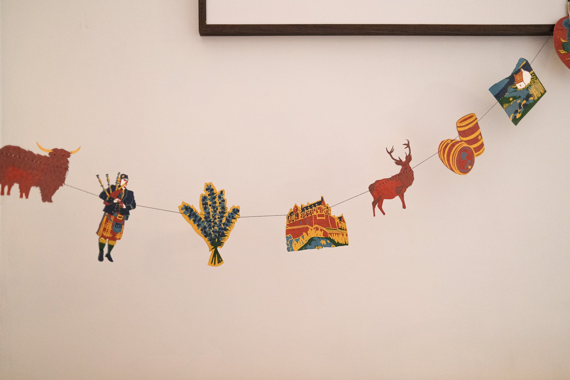 As a Scottish business, we had to create a garland filled with iconic Scottish images! Ten images and scenes of Scotland are sewn along this garland.